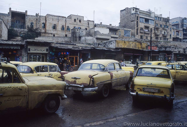 Questo reportage fotografico è stato il frutto di un viaggio "fai da te" fatto nel lontano gennaio del 1990. Un viaggio che dire avventuroso è talmente riduttivo che rasenta l'offesa, intrapreso dal sottoscritto e da un intrepido amico, mio omonimo. Con una macchina a noleggio abbiamo girato la Siria in lungo e largo, da Damasco a Bosra ad Aleppo a Palmyra fino al confine con l'Iraq e il Libano; posti di blocco e gente armata un po' dappertutto; dico "gente" e non polizia perché non avevano una divisa vera e propria e non si capiva veramente chi fossero. Molte volte ci fermavano perché volevano semplicemente un passaggio in auto. La gente comune, comunque, è sempre stata gentile e ospitale. Di fronte alla Grande Moschea di Damasco abbiamo conosciuto un insegnante che per arrotondare il suo magro stipendio vendeva fagioli caldi ai passanti. Dopo aver fatto con lui due chiacchiere ci ha invitato a casa sua e fatto conoscere la sua famiglia oltre a raccontarci della sua vita. Esperienza molto toccante.